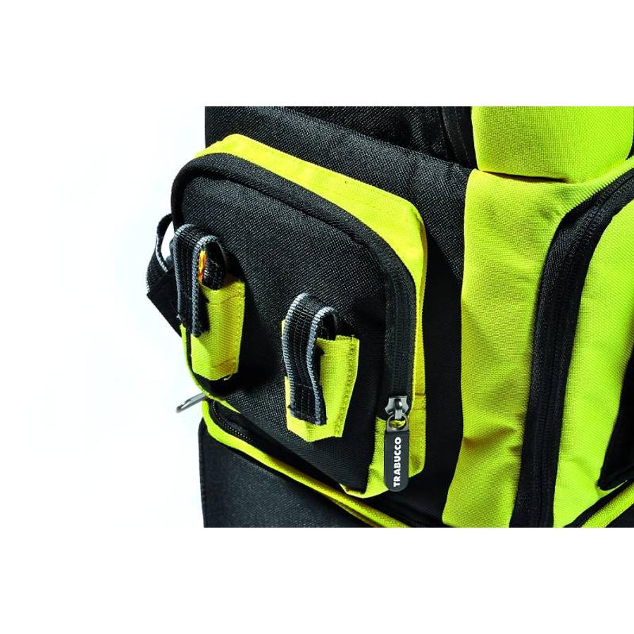 Het deskundige team van Trabucco is uniek in Europa op dit gebied, dus het is vanzelfsprekend dat het bedrijf voortdurend investeert in productontwikkeling, wat wordt bewezen door de introductie van deze tassencollectie. De XTR-tassen hebben een vrij rijke functionaliteit en kenmerken tegelijkertijd een zeer verfijnd design, met de combinatie van zwart en chartreuse, wat een sterk signaal afgeeft aan de markt. De tassen, rugzakken en foudralen zijn gemaakt van duurzaam - 1200 denier waterbestendig - wasbaar materiaal.De meegeleverde plastic dozen met veel compartimenten maken het mogelijk om de binnenruimte volledig te benutten voor het georganiseerd opbergen van alle accessoires. De speciale vullingen, de stijve bodem, de handvatten en schouderbanden, de ritsen en de naden zijn met grote zorg en precisie vervaardigd.Naast accessoires vindt u in onze hengelsportwinkel een ruime keuze aan hoogwaardige Aas en voer voor alle vissoorten. Vissen gaat niet alleen over het vangen van vis, maar ook over het genieten van de nabijheid van de natuur. In onze kampeercategorie vindt u alles wat u nodig heeft voor een comfortabel en veilig verblijf aan het water. Mis onze nieuwste producten niet! In onze webshop bieden we alleen producten aan van de meest betrouwbare en erkende Merken. U kunt kiezen uit visuitrusting van gerenommeerde fabrikanten zoals Korum, Garbolino, Fox en nog veel meer. Bij ons vindt u alles wat u nodig heeft voor succesvol en plezierig vissen!De verpakking bevat: Trabucco XTR Surf Team Rugzak 54x34x22cm