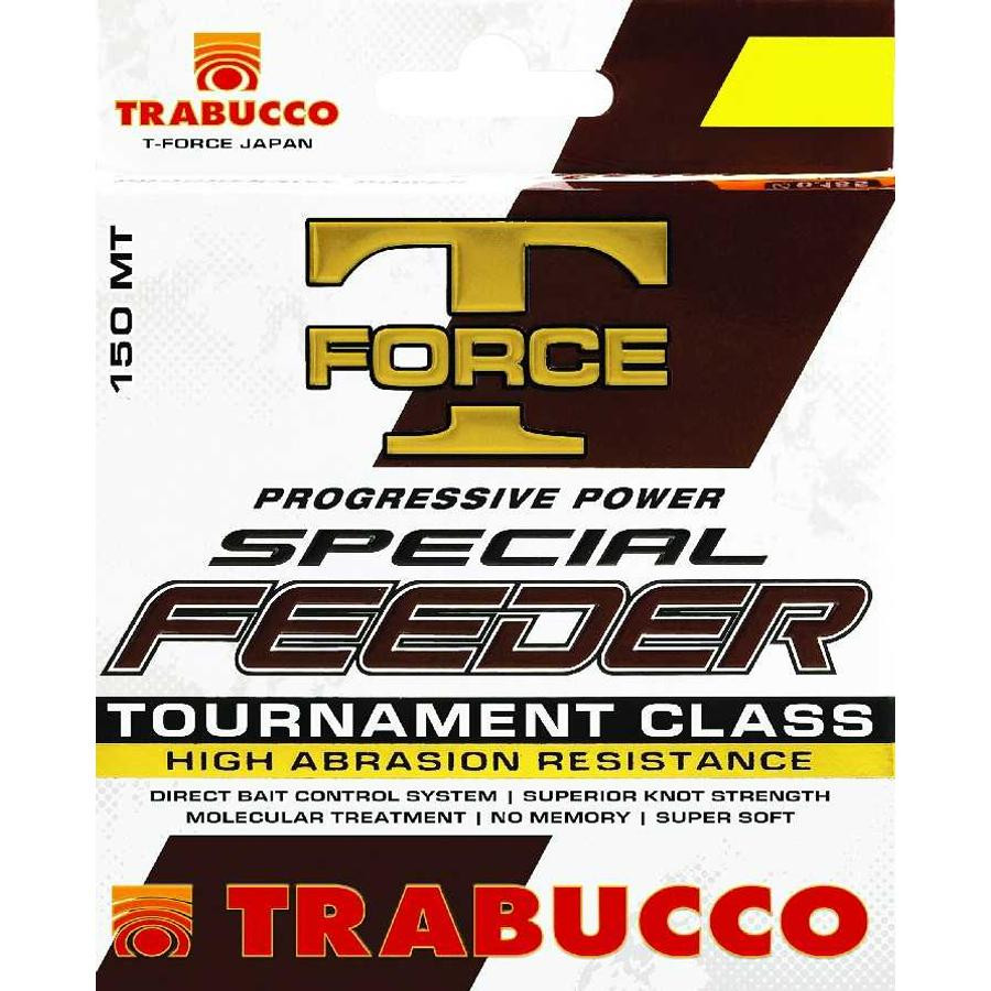 De T-Force Special Feeder monofilament lijn is speciaal ontwikkeld om te voldoen aan de behoeften van feedervissers. Deze monofilament lijn kenmerkt zich door een donkerbruine kleur, ideale hardheid, snelle zinking en hoge slijtvastheid, waardoor de levensduur zeer lang is. Dankzij de lage rek zijn aanbeten direct zichtbaar. Hiermee kunnen ook verre worpen nauwkeurig worden uitgevoerd. Naast feedervissen kan het ook worden gebruikt voor allerlei bodemvismethoden. Verkrijgbaar in verpakkingen van honderdvijftig meter.