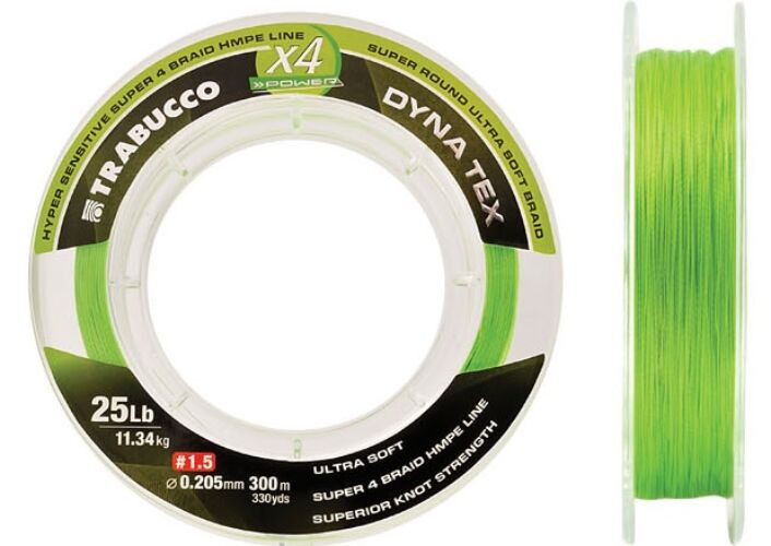 Trabucco Dyna-Tex X4 Power 150m 0,185mm Lime Geel Gevlochten Hoofdlijn