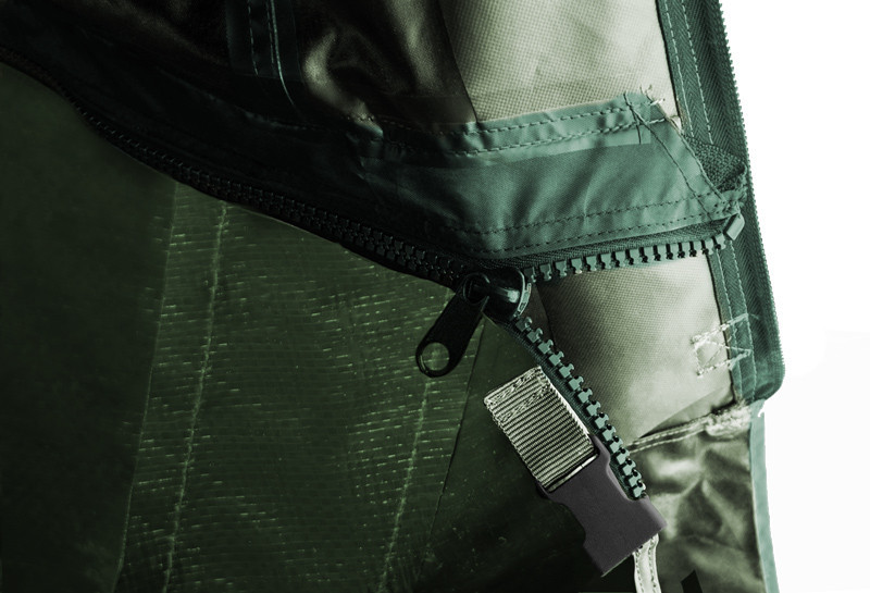 Az előző modellhez képest nagy előny a cipzáros padló. Az egész sátor belső kerületén pár centiméterre a padlótól cipzár van belevarrva, mely megakadályozza, hogy rovar vagy rágcsáló netalán víz bekerüljön a sátorba. A könnyebb rögzítés érdekében a padlón meg van jelölve a bejárat.Een winterhoes voor de tent is ook verkrijgbaar (geen onderdeel van het product! apart verkrijgbaar!), die van hetzelfde materiaal is gemaakt als de tent.Door deze te plaatsen, ontstaat er onder de luifel nog eens ca. 40cm afgesloten ruimte voor de tent. De winterhoes verbetert bovendien de warmte-isolerende eigenschappen van de tent.