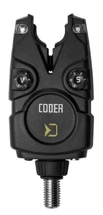 De beetmelder wordt gevoed door een 12V LR23A batterij, die een voldoende lange levensduur heeft. Bij een lege batterij wordt een kort geluidssignaal gegeven. Met de 'V' schakelaar kunt u één van de 5 volumeniveaus selecteren, inclusief de stille modus. Het is ook mogelijk om het gewenste geluids- en gevoeligheidsniveau (in het bereik van 1-9 cm) te selecteren, dat ook 5 verschillende niveaus heeft. Het onbetwiste voordeel van de CODER beetmelder is de mogelijkheid om te kiezen uit 7 kleuren voor de LED-diode. Iedereen kiest zijn favoriet, en als men verandering wil, kan men eenvoudig een andere kleur kiezen volgens de instructies. Een vallende aanbeet wordt aangegeven met een ander geluid, de LED van de beetmelder licht 15 seconden op na elke aanbeet. Aan de onderkant bevindt zich een 2,5 mm jack-ingang voor het aansluiten van een lichtsignaal. Tijdens nachtvissen kan ook de positiediode worden ingeschakeld.