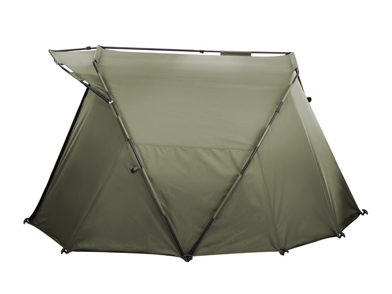 Bij het ontwerpen van dit product was het de bedoeling om een niet-traditionele, maar zeer praktische tentoplossing op de markt te brengen. Elk raam vormt een aanzienlijk deel van de prijs van de tent. Hierbij moet rekening worden gehouden met het benodigde materiaal en het extreem tijdrovende naaiwerk. We besloten echter tegen de stroom in te zwemmen en de klassieke smalle ingang en de twee ramen die van de meeste tenten bekend zijn, te vervangen door een ultrabrede ingang, die tal van aanzienlijke voordelen biedt. Het biedt een perfect uitzicht op de situatie rond de tent, alsof je beide ramen aan de voorkant hebt. Bovendien kan de tent veel sneller worden geventileerd (bevat ook een achterraam) en kan deze indien nodig ook worden afgesloten. Het plaatsen en verwijderen van bedden is nu een stuk eenvoudiger! En het belangrijkste is dat we in dit geval de prijs van onnodige ramen hebben besteed aan de oppervlakte van de tent. Het biedt grandioze ruimte voor twee personen. De tweeribsconstructie van de tent is gemaakt van aluminium buizen die perfect op elkaar aansluiten en een zeer stevige basis vormen. Samen met de gebruikte hoogwaardige materialen staat de PANORAMA Eazy voor een betrouwbare en extreem stabiele tent, die ongetwijfeld zelfs sterke wind of intense neerslag aankan. Ook de volledig gelijmde en achteraf geteste naden dragen hieraan bij. Door zijn afmetingen biedt de tent gemakkelijk plaats aan twee bedden, terwijl er nog steeds voldoende ruimte overblijft voor een comfortabel verblijf. Dankzij zijn transportafmetingen is hij ook ideaal voor vissers die van eenzame expedities houden, wanneer de PANORAMA de meest comfortabele plek biedt voor een bed, fauteuil, tas en alle benodigde spullen. De toegevoegde waarde is ook een grote voorscherm, wat in deze prijscategorie niet vanzelfsprekend is. De tent bevat de grondzeil, die met klittenband aan de wanden rondom kan worden bevestigd. Voor gemakkelijk transport krijgt u ook een praktische draagtas met handvat.Technische parameters:Buitenafmeting: 305x250cmTenthoogte: 160cmLengte van de luifel: 55cmTransportafmetingen: 140x25x25cmTentgewicht: 8kgInhoud van het pakket: 1x Delphin Panorama Eazy Tent