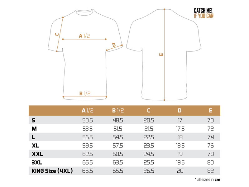 Het T-shirt zelf is van uitstekende kwaliteit, net als de gebruikte kleurendruk. We bieden het aan in een breed scala aan maten van S tot KING SIZE (wat overeenkomt met 4 + XL, in de meeste landen bekend als XXXXXL). Het King size model kleedt zelfs de meest robuuste vissers van 135 kg + speels aan.