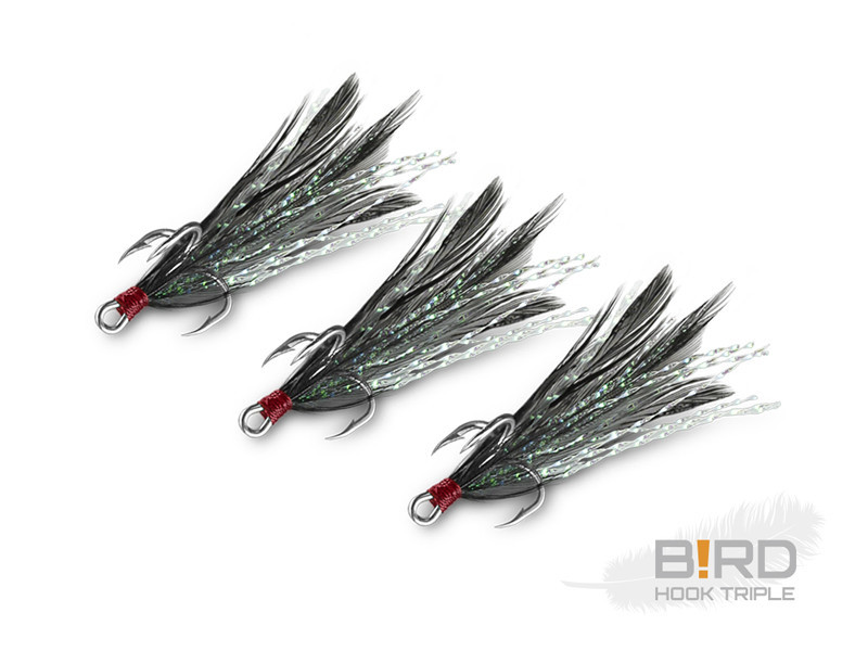 Delphin B!RD Hook TRIPLE / 3 stuks zwarte veren #10 gedetailleerde beschrijving