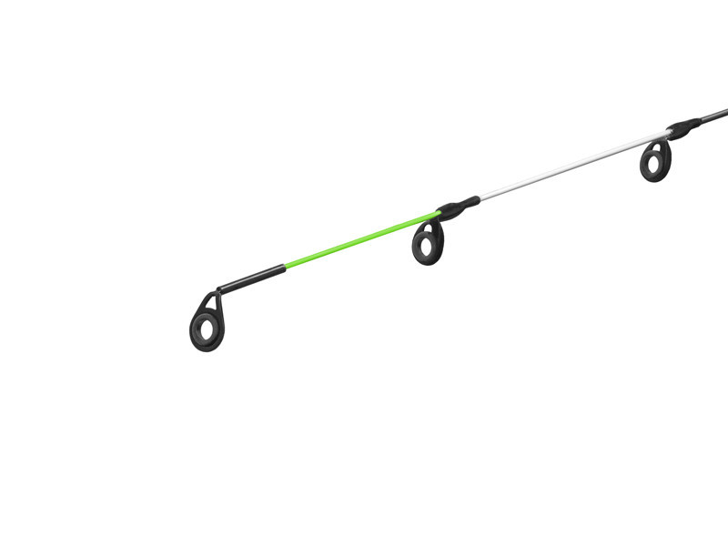 De blank heeft vernieuwde, tweedelige geleideogen met SIC-inlays gekregen, die de lijn uitstekend geleiden en tegelijkertijd klitten tijdens het werpen voorkomen. De zwarte kleur van de ogen, samen met de matte blank en het kurken handvat, creëren een sportief-elegant design, dat we hebben aangevuld met frisse witte en groene elementen.