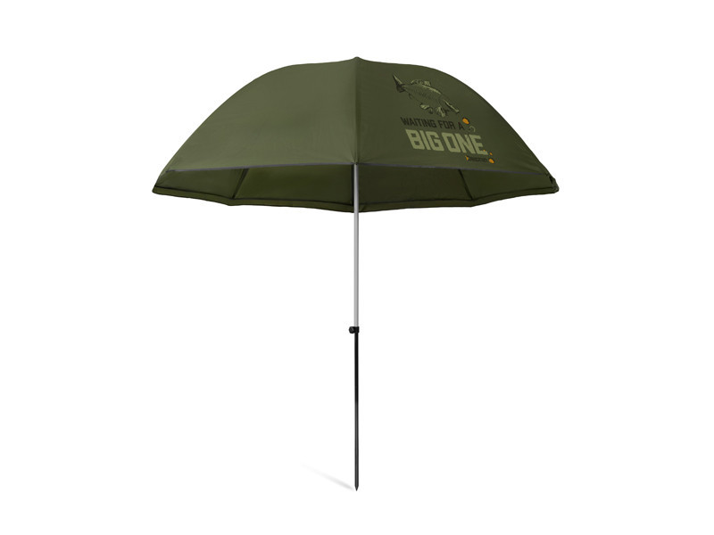 De koepel en zijkanten van de paraplu zijn versierd met kenmerkende karperafbeeldingen, waardoor deze perfect is voor karpervissers. De 250 cm diameter koepel biedt voldoende ruimte voor twee visstoelen en een bijzettafel. De telescopische stang maakt het mogelijk om de hoogte van de paraplu aan te passen, zodat deze geschikt is voor vissers van elke lengte.De grondpen in de basis vergemakkelijkt het plaatsen van de paraplu in de grond.De naden van de paraplu zijn volledig afgedicht met waterdichte tape, waardoor deze 100% waterdicht is. De zijwand kan met een hoogwaardige rits rond de koepel worden bevestigd. Het onderste deel van de zijwand is voorzien van handvatten, zodat deze met grondpennen aan de grond kan worden bevestigd. Met het scharnier kan de hellingshoek van de koepel worden aangepast, zodat u zich kunt beschermen tegen zonnestralen of wind.De Delphin BigONE CARP paraplu is een veelzijdig, praktisch hulpmiddel waarmee u onder alle weersomstandigheden van het vissen aan de waterkant kunt genieten.Inhoud van het pakket: 1 stuk Delphin BigONE CARP Paraplu met Zijwanden
