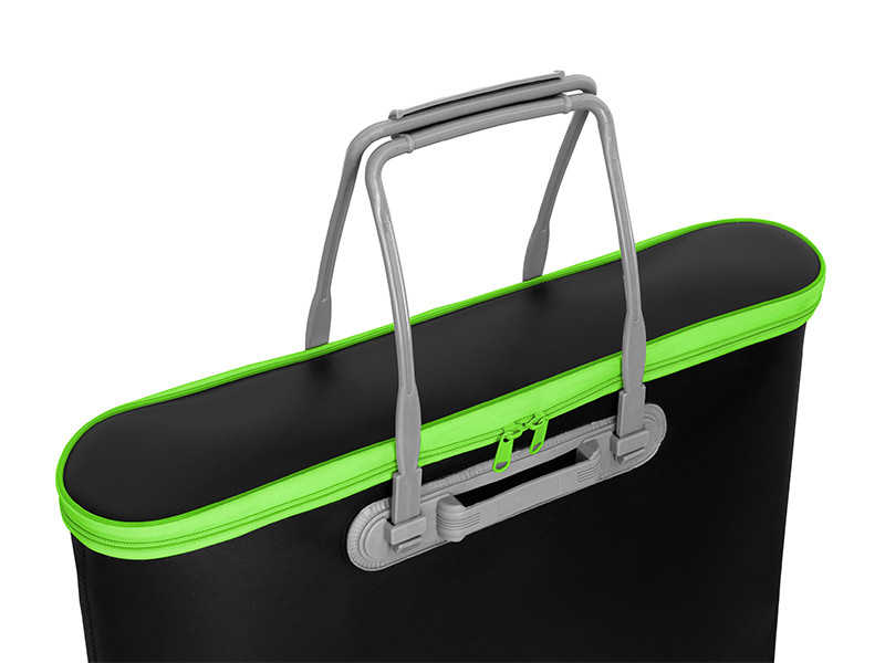 Het materiaal van de tas is 100% waterdicht EVA (ethyleen-vinylacetaat), wat voorkomt dat water uit de tas lekt, zodat je natte leefnetten en schepnetkoppen veilig kunt vervoeren zonder je zorgen te maken dat de rest van je uitrusting nat wordt. Een speciale eigenschap van EVA-materiaal is dat het geen geuren absorbeert, zodat onaangename geuren niet uit de gesloten tas kunnen ontsnappen, wat uiterst praktisch is tijdens het vissen.