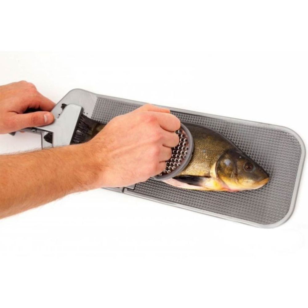 Wie houdt er niet van deze lekkernijen: vissoep, gebakken vis! Maar voor de bereiding ervan is in elke keuken een goed fileermes en een visreiniger nodig, die koks praktisch en snel kunnen helpen.Met de Visreinigingsplank met gratis Outdoor Fileermes kunnen we vissen snel en veilig schoonmaken. Plaats de vis eenvoudig op de visreiniger, voorzien van een speciale klem en antislip oppervlak, en klem de staart vast. We kunnen hem ook gebruiken voor het fileren van grotere vissen, aangezien de afmetingen 39cm x 24cm zijn. De schubben kunnen met de ronde schrapersschijf van de vis worden verwijderd. De schrapersschijf is zo ontworpen dat hij een veilige, comfortabele grip biedt, waardoor hij gemakkelijk te gebruiken is. De plank is gemaakt van plastic en kan na het schoonmaken eenvoudig worden afgewassen. Het ontwerp van het Outdoor fileermes zorgt voor een comfortabele grip en biedt flexibele, moeiteloze sneden. Het oppervlak is voorzien van een Anticut, ofwel snijbestendig oppervlak, dat voorkomt dat we onze handen bezeren. Deze set is nuttig voor elke visser, maar ook een uitstekende cadeaukeuze. Als we klaar zijn met het schoonmaken van de vis en we echt een unieke lekkernij willen, marineer de vissen dan en rook ze. Het is de moeite waard om de eenvoudig te gebruiken EnergoTeam tafelvisroker, gemaakt van roestvrij staal, uit te proberen. Ideaal voor kamperen, meerdaagse vistochten en uitstapjes. Inhoud van de verpakking: schrapersschijf, visreinigingsplank, gratis fileermes.