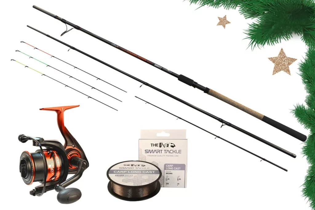 A Karácsonyi Dynamic Feeder Szett 3,60 m tökéletes választás minden horgász számára, aki megbízható, erős és pontos feeder felszerelést keres kedvező áron. A szettben minden megtalálható, ami egy azonnal bevethető, komplett feeder kombinációhoz szükséges: a strapabíró Carp Expert Dynamic feeder bot, a megbízható Carp Expert Intruder Feeder 6000 orsó, valamint a prémium minőségű The One Long Cast zsinór. Ez a szett kezdőknek és haladó horgászoknak egyaránt ideális, ráadásul ünnepi ajándéknak is kiváló választás.Carp Expert Dynamic Feeder bot A Carp Expert Dynamic feeder bot a tökéletes esztétikum mellett kiváló fizikai paraméterekkel és minőségi anyaghasználattal rendelkezik. A nyél alsó részén és az orsótartó felett EVA borítás található, amely dobás közben nem csúszik, könnyen tisztítható, és még téli horgászat során is kellemes fogást biztosít. A köztes részen darált parafa bevonatos EVA borítás gondoskodik az időtálló, esztétikus és stabil fogásról.A felül szorítós csavaros orsótartó tökéletesen rögzíti az orsót, miközben kényelmes fogást nyújt. A blank nagyon könnyű és vékony, így dinamikus dobásokat tesz lehetővé:360/150 g – 14 mm390/150 g – 15 mm360/180 g – 14,3 mm390/180 g – 15,3 mm420/180 g – 15,5 mmAz orsótartó és a bot vége közti távolság a hosszhoz igazodik: 360 cm-es változatnál 45 cm, 390 cm-esnél 47 cm, 420 cm-esnél 49 cm. A keverőgyűrű („K” gyűrű) átmérője minden változatnál 30 mm, amelyen könnyedén siklik ki a zsinór, még nagyobb orsók használata esetén is. A két legnagyobb gyűrű kéttalpas, extra erőt és tartást biztosítva. A bottesten 8 db gyűrű, a rezgőspiccen pedig 5 db található. A spiccgyűrű kialakítása megakadályozza a zsinór rácsavarodását, így elkerülhetők a bosszantó szakadások.Zsinórral befűzve a bot határozott, gerinces karaktert mutat, pontos dobásokat és precíz fárasztásokat biztosít. A Dynamic feeder bot a hétköznapi horgászat mellett versenyzésre is alkalmas, így sokoldalú választás.Carp Expert Intruder Feeder 6000 orsó Az Intruder Feeder 6000 orsó egy precíz, elsőfékes feeder orsó, amely tökéletes társ a 360 és 390 cm-es feeder botokhoz. A ház és a hajtókar nagy keménységű grafit-kompozitból készült, míg a dob fém, műanyag zsinórklipsszel ellátva. A fék széles tartományban állítható, így könnyedén reagálhatunk a halak kirohanásaira.Az orsóban 5+1 golyóscsapágy és tűgörgős visszaforgásgátló biztosítja a sima futást és a kifogástalan élményt. Az 5.0:1 áttétel gyors zsinórbehúzást tesz lehetővé, így a nagy távolságra bevetett szerelékek is könnyen visszacsévélhetők. Zsinórkapacitása: 0,24 mm-es zsinórból 200 méter tölthető a dobra.The One Carp Long Cast zsinór A The One Carp Long Cast zsinór kifejezetten nagy távolságra történő horgászatra lett fejlesztve. Lágy, mégis erős és strapabíró, kiváló csomótűrő képességgel. Barna színe miatt jól beolvad az aljzatba, így szinte láthatatlan a vízben. Könnyedén pereg le az orsó dobjáról, lágyságának köszönhetően kisebb ellenállást fejt ki a gyűrűkön, elősegítve a nagy távolságra történő dobásokat.Négy méretben érhető el: 0,25 mm, 0,28 mm, 0,30 mm és 0,35 mm vastagságban, 300 méteres kiszerelésben.Ez a komplett feeder szett minden horgász számára ideális választás, aki azonnal használható, megbízható és erős felszerelést szeretne. A Karácsonyi Dynamic Feeder Szett 3,60 m nemcsak praktikus, hanem kiváló ár-érték arányt képvisel, így ünnepi ajándéknak is tökéletes.Akár most vágsz bele a horgászat világába, akár tapasztalt pecás vagy, a gondosan összeállított horgász szettek biztos alapot nyújtanak a sikeres élményhez. Kínálatunkban megtalálod a megbízható Delphin márka szettjeit is, amelyek funkcionalitásukkal és minőségükkel emelik a vízparti időtöltés színvonalát. Egy jól kiválasztott szetthez elengedhetetlenek a megfelelő botok, valamint a tartós, nagy szakítószilárdságú zsinórok. A melles és gázló csizmák kényelmes mozgást biztosítanak a vízben, míg a lámpák és fejlámpák gondoskodnak a megfelelő fényről a hajnali vagy esti órákban. Ne felejtsd el a nélkülözhetetlen aprócikkeket sem – minden részlet számít a siker érdekében.A csomag tartalma: 1 db Carp Expert Dynamic Feeder bot, 1 db Carp Expert Intruder Feeder 6000 orsó, 1db The One Carp Long Cast zsinór 300m