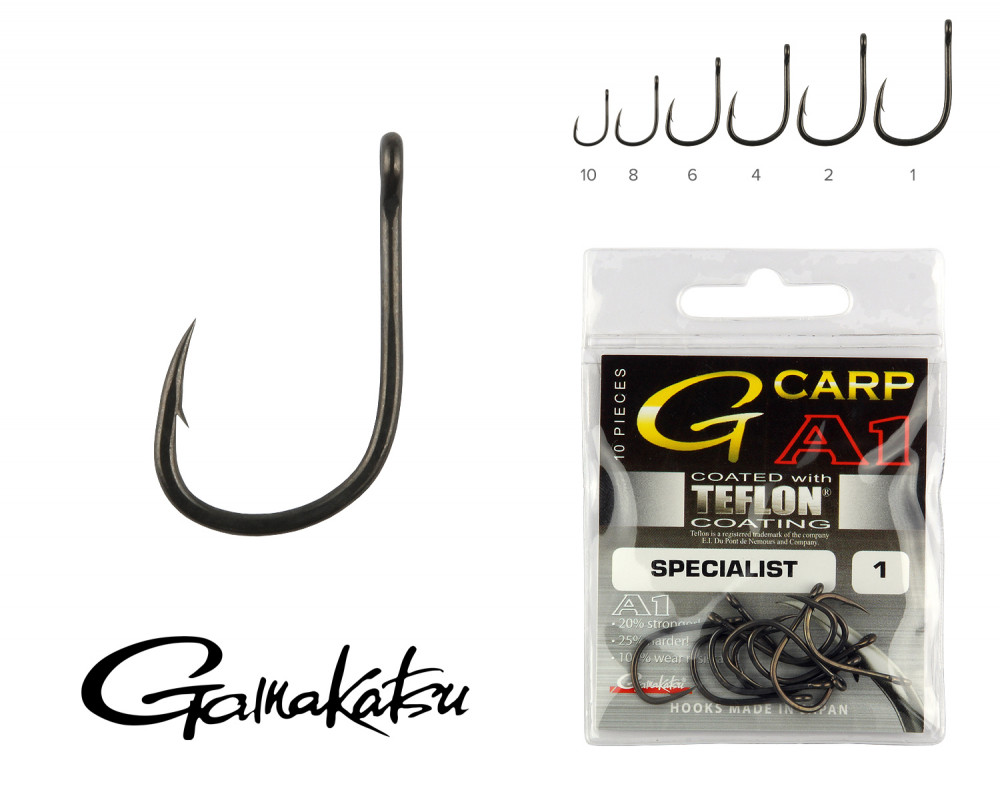 Beoordelingen Gamakatsu A1 Teflon Specialist Zwart 1 10 stuks/verpakking Met oog Met weerhaak Boilie haak