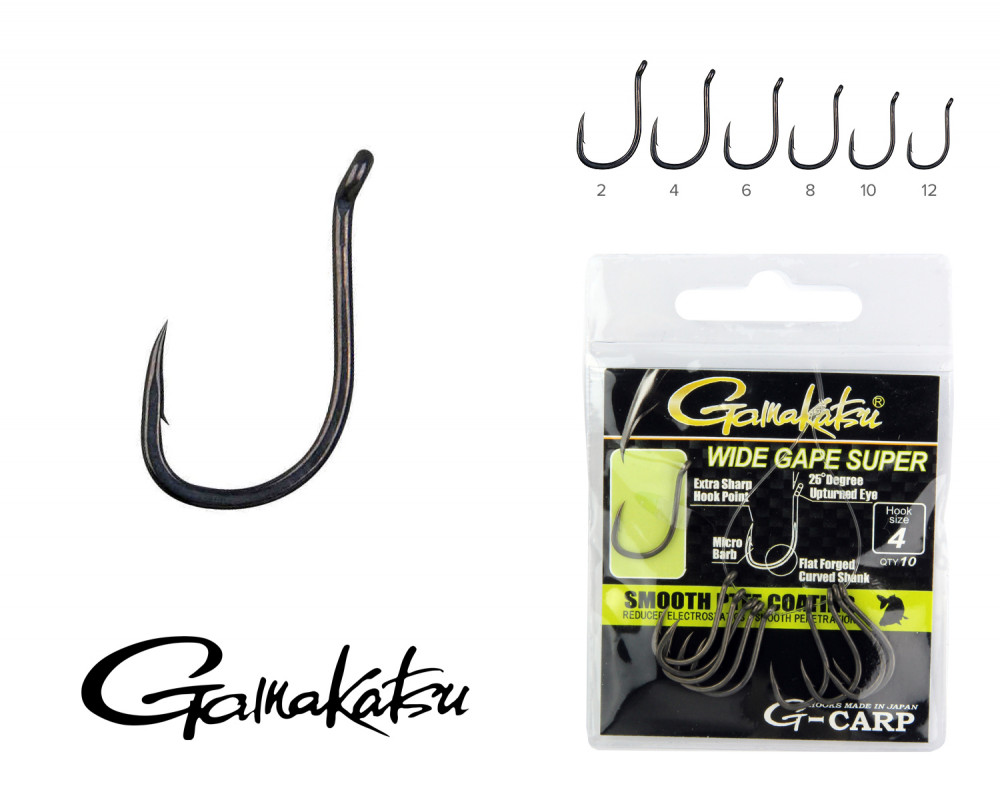 Beoordelingen Gamakatsu G-Carp Wide Gape Super Zwart 8 10 stuks/verpakking Met oog Micro weerhaak Boiliehaak
