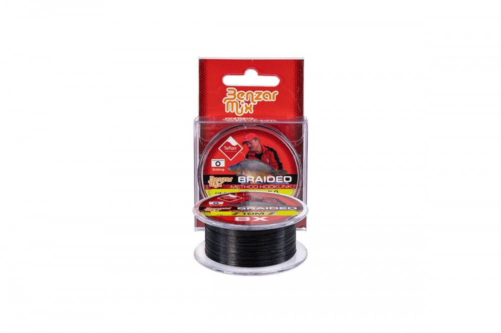 Benzár gevlochten method onderlijn De Benzár serie biedt, naast zijn populaire voer en aassoorten, ook diverse accessoires voor vissers, die zelfs tijdens wedstrijden kunnen worden gebruikt. Dit is niet anders voor dit product, dat een perfecte variant biedt voor het binden van onderlijnen voor de momenteel populaire method-vismethode. Een cruciaal punt bij het gebruik van de method is de keuze van de juiste gevlochten onderlijn. De Benzár Method gevlochten onderlijn is een uit 8 strengen geweven zinkende lijn, die ook een Teflon coating heeft gekregen. Naast zijn uitstekende slijtvastheid is het, dankzij zijn zachtheid, gemakkelijk te knopen. Het matenbereik voldoet aan alle eisen, de grotere maten bieden ook een ideale keuze voor het vissen op grote karpers en graskarpers. Ze worden geleverd in een verpakking van 10 meter, waaruit, afhankelijk van de maat, veel onderlijnen kunnen worden gemaakt. Vanwege zijn sterkte raden we het ook aan voor boilie-rigs!