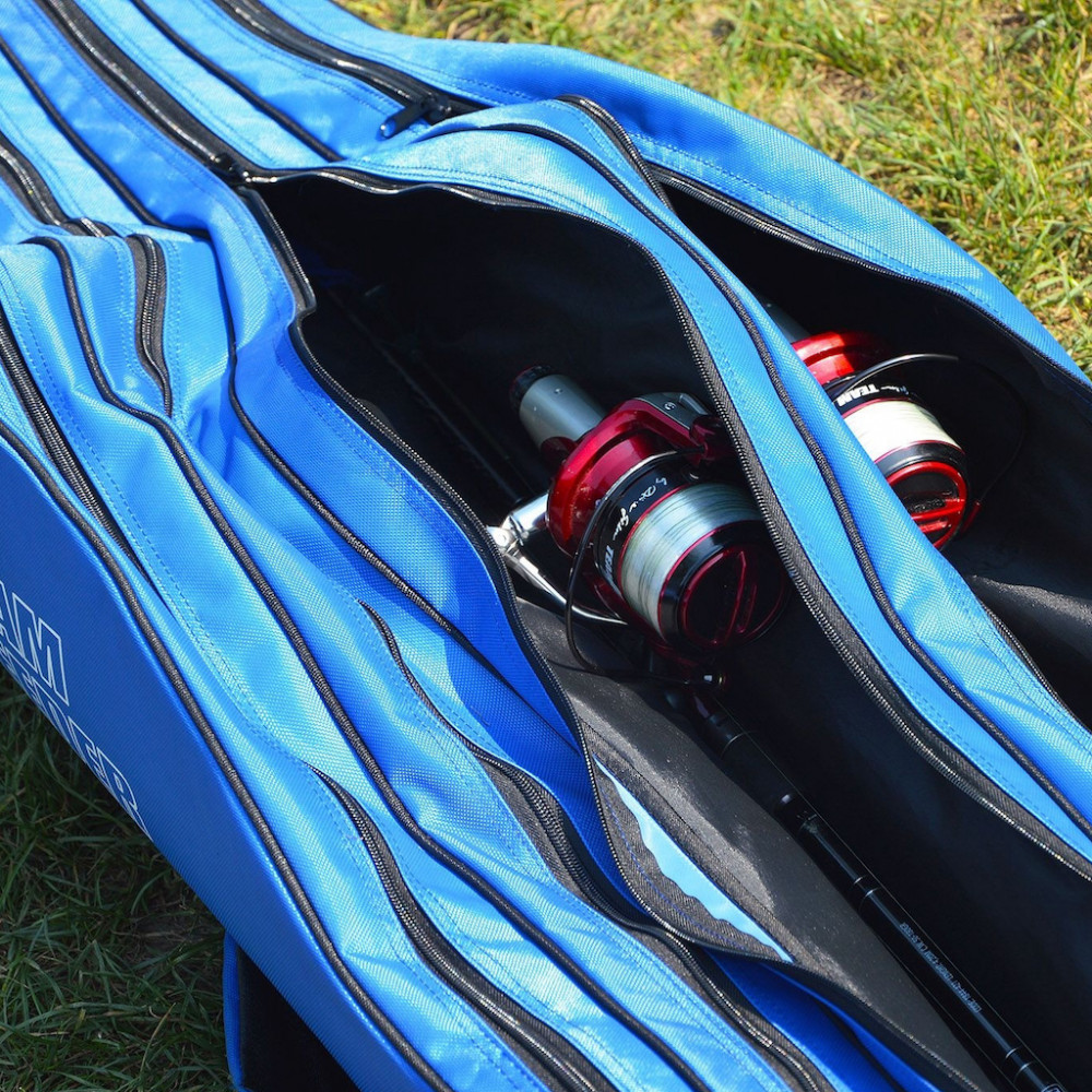 De gewatteerde schouderband, waarvan de lengte naar wens verstelbaar is, maakt extreem comfortabel transport mogelijk. Het materiaal van de hengeltas is waterdicht. Hij is verkrijgbaar in een formaat van 165 cm, zodat zelfs zeer lange match- en feederhengels van wel 4,8 meter erin kunnen worden geplaatst en vervoerd.