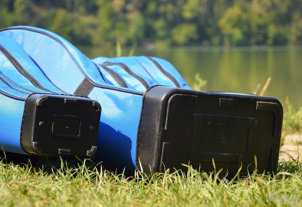 Voor veilig transport van hengels en molens bevindt zich een schuimrubberen compartimentverdeler in de tas. De bijzonderheid is de harde plastic basis aan de onderkant, waardoor de hengeltas niet in het gras hoeft te worden gelegd, maar op zijn eigen voeten kan staan.