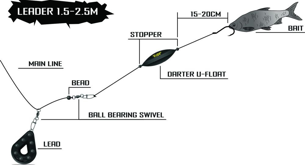 Stefan Seuß heeft de Darter U-Float speciaal ontwikkeld voor intensief beviste wateren, evenals voor situaties waarin meervallen schuw reageren op grotere drijvende lichamen die stroming veroorzaken. De Darter U-Float is ontworpen als het uiteinde van een pijl, met 4 convexe (naar buiten staande) vleugels op een dunne as, breekt de waterdruk in sterke stroming en leidt deze naar het drijflichaam. De vleugels fungeren bijna als kiel en laten het aas wiebelen in de stroming.