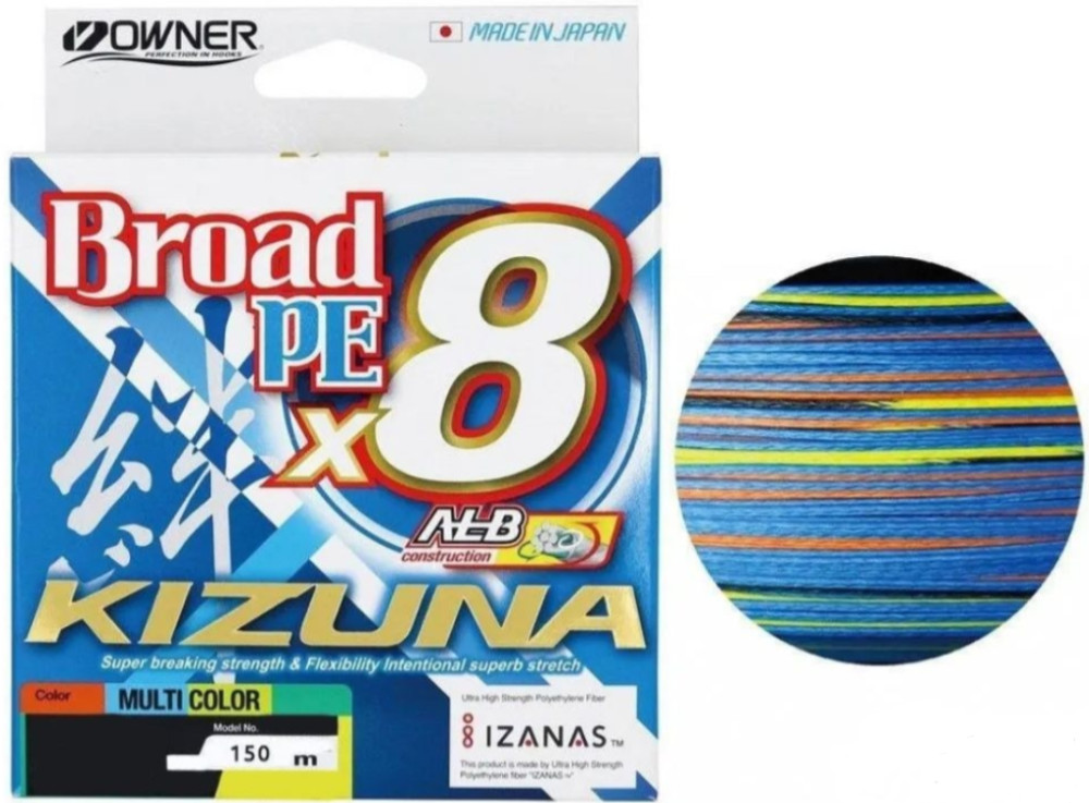 OWNER Kizuna X8 Multicolor 150m 0,17mm Gevlochten Werplijn gedetailleerde beschrijving