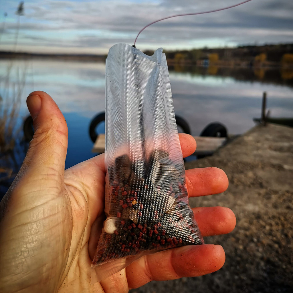 Het belangrijkste element bij het vissen met PVA-zakken. Een speciaal gevormd loodgewicht dat gemakkelijk in het midden van de zak kan worden geplaatst en niet veel ruimte inneemt. Dit is belangrijk omdat alleen zo de maximale werpafstand kan worden bereikt. Naast het speciaal hiervoor ontwikkelde gewicht, kan de zak gemakkelijk worden gevuld en kan het uiteinde van de gesloten zak om de steel worden gewikkeld. In de rubberen huls aan de onderkant van het loodgewicht kunnen we onze wartel perfect plaatsen, wat belangrijk is bij zelfhaaksystemen.
