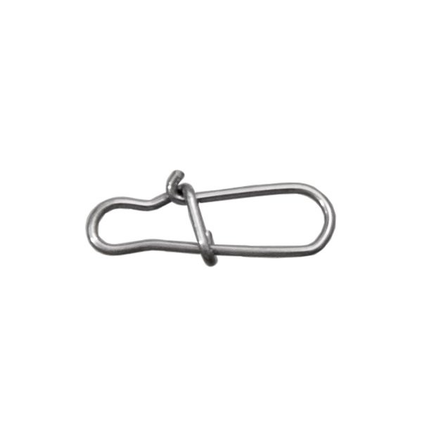 Sterke veiligheidsclip, gemaakt van hoogwaardig staal, die het eenvoudig maakt om onze tuigen te monteren en bovendien een snelle wisseling van onze onderlijnen mogelijk maakt.