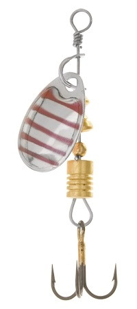 Kleine, traditioneel vormgegeven spinner die jonge vissen imiteert. Het blad heeft een minimaal langwerpige, ronde vorm.