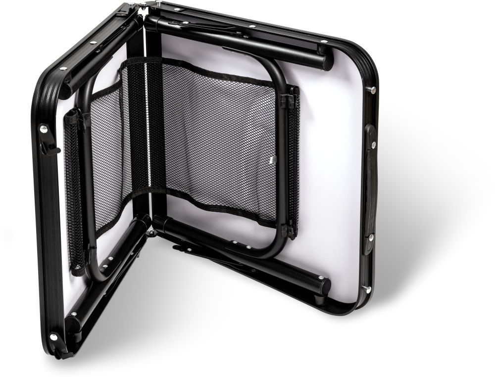 Ideaal voor oever- en bootvissers als opbergruimte voor lampen, visgerei en kookbenodigdheden. Onder het tafelblad bevindt zich een extra netvak.