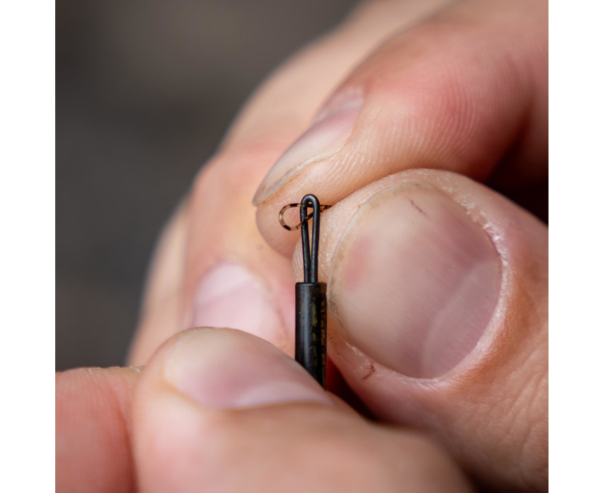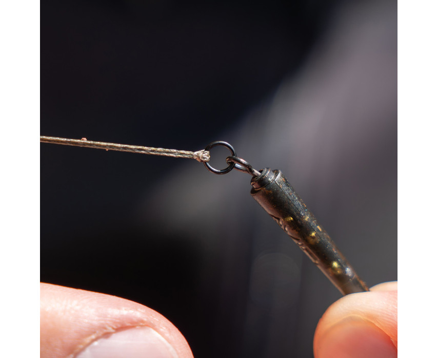 Aan de bovenzijde van de steel bevindt zich een conische, smal geprofileerde lus, die hoofdlijn tot 0,50 mm dik kan opnemen. De hoofdlijn kan direct aan de lus worden geknoopt, of voor een snelle PVA-zakwissel kan een lus-in-lus-verbinding worden gebruikt. Deze flexibiliteit stelt de visser in staat om de montage aan te passen aan zijn eigen techniek en situatie.