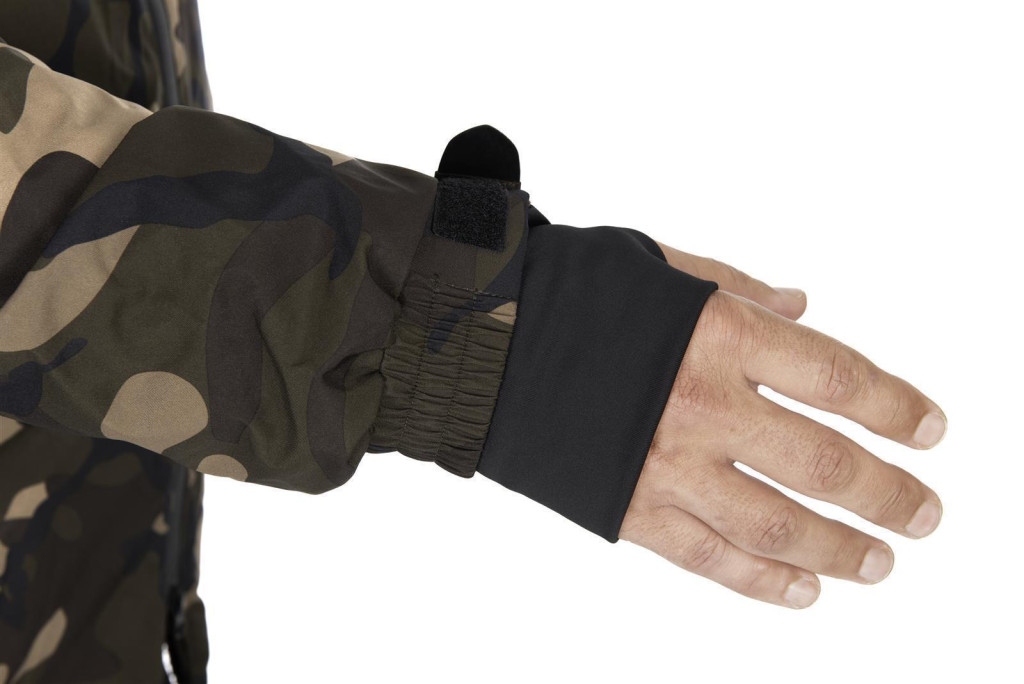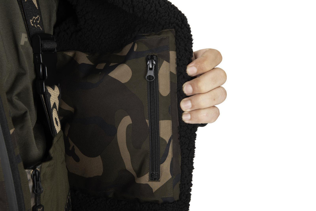 Het praktische ontwerp van de Fox Camo Sherpa Tec jas is bijzonder nuttig voor visliefhebbers. Het heeft een afneembare capuchon die, dankzij de klep, effectief beschermt tegen regen en wind. De verstelbare trekkoorden in de taille en aan de onderkant zorgen ervoor dat de jas perfect aansluit op het lichaam, wat bijzonder belangrijk is voor bewegingsvrijheid en thermische isolatie.