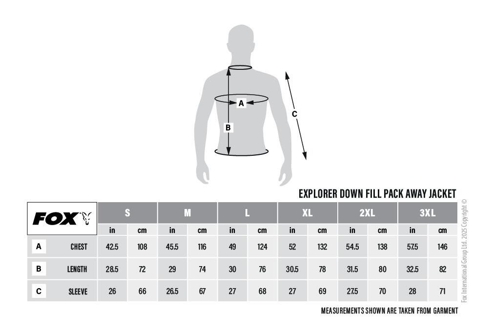 De Fox Explorer Downfill Packaway Jacket is een lichte, maar uitstekend isolerende donsjas, speciaal ontworpen voor buitenactiviteiten, inclusief vissen. De jas is gevuld met 90% dons en 10% eendenveren, wat de lichaamswarmte effectief vasthoudt, terwijl het extreem licht blijft. De meegeleverde opbergzak maakt het mogelijk om de jas compact op te vouwen en gemakkelijk te vervoeren of op te bergen.De buitenlaag en de voering zijn beide gemaakt van 100% nylon, wat waterafstotende eigenschappen heeft en windbestendig is. De capuchon met elastische band, de elastische manchetten en de elastische onderzoom zorgen voor een nauwsluitende, winddichte pasvorm, waardoor de jas effectief koude lucht buitenhoudt. De borstzak met rits en de handzakken met rits bieden praktische opbergruimte voor kleinere spullen of persoonlijke bezittingen.De jas is verkrijgbaar in meerdere maten, van S tot en met 3XL, zodat elke visser de juiste variant kan vinden. Dankzij het strakke, functionele ontwerp en het uitstekende materiaalgebruik is deze jas een ideale keuze voor koudere dagen aan de waterkant.Waarom het een ideale keuze is voor vissen:Deze donsjas is een perfecte oplossing voor vissers die ook bij koud weer comfortabel aan de waterkant willen vertoeven. De donsvulling houdt warm, terwijl de lichte constructie de bewegingsvrijheid niet belemmert. De praktische zakken, het winddichte ontwerp en de opbergmogelijkheid dragen allemaal bij aan het feit dat de jas een betrouwbare metgezel is tijdens vistrips.Vissen is niet alleen een passie, maar ook een levensstijl – daarvoor bieden wij u kwaliteitsuitrusting en comfort! Ontdek onze T-shirts en jassen, die ideaal zijn voor dagen aan de waterkant, ongeacht het weer. Kies uit premium visstoelen voor maximaal comfort, en mis onze zonnebrillen niet, die beschermen tegen verblindend licht en helpen onderwaterbewegingen waar te nemen. Het merk Preston is ook een betrouwbare keuze onder professionals. In onze webshop vindt u alles voor een comfortabel, stijlvol en succesvol avontuur aan de waterkant – kies gewoon wat u nodig heeft!Inhoud van het pakket:Fox Explorer Downfill Packaway Jacket Dons Jas XL