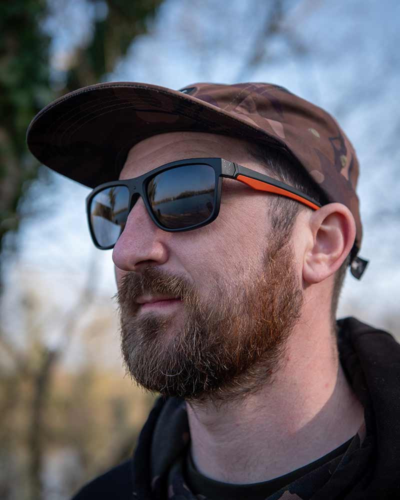 Fox Collection gepolariseerde zonnebril, die helpt oppervlaktereflectie te verminderen. Zwart montuur en pootjes, oranje binnenkant. Grijze gepolariseerde lens. TAC schokbestendige lens. UV400 bescherming. CAT 3 lenzen. CE goedgekeurd. Verkrijgbaar in een hard EVA-hoesje en met een microvezel reinigingsdoekje.