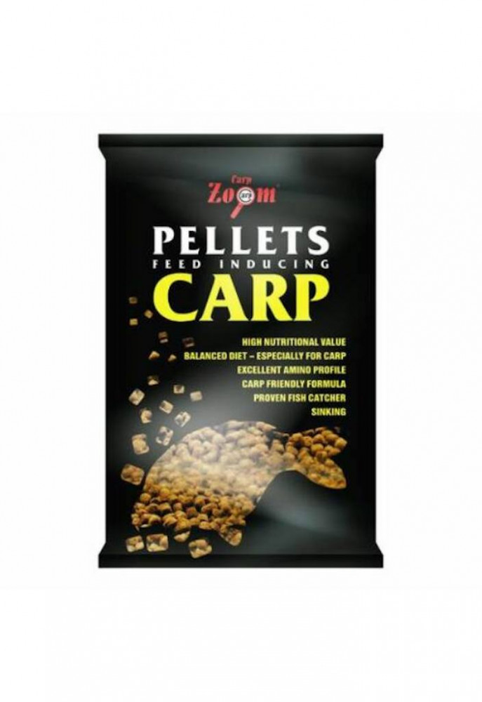 Carp Pellets Karper voerpellet Voer- en lokpellet met gereduceerd oliegehalte en snelle oplosbaarheid. Ideaal om afzonderlijk te gebruiken of gemengd met voer. Het verzadigt de vissen die op de voerplek komen niet, waardoor ze langdurig blijven eten. In maten van 6-10 mm kan het ook als haakaas worden gebruikt. Uitstekend karper-, graskarper-, kroeskarper- en brasemaas. • Oplostijd: 15-30 minuten