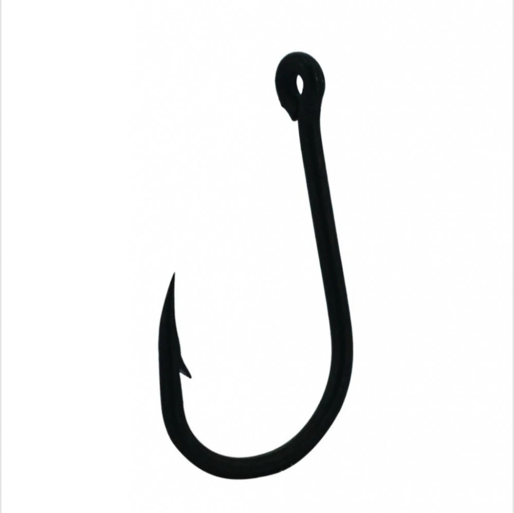 Klassieke karperhaak met dikke draad. De punt is naar binnen gericht, de steel is recht en middellang, en het oog is ook recht. Voorzien van een PTFE coating en een extra scherpe punt.