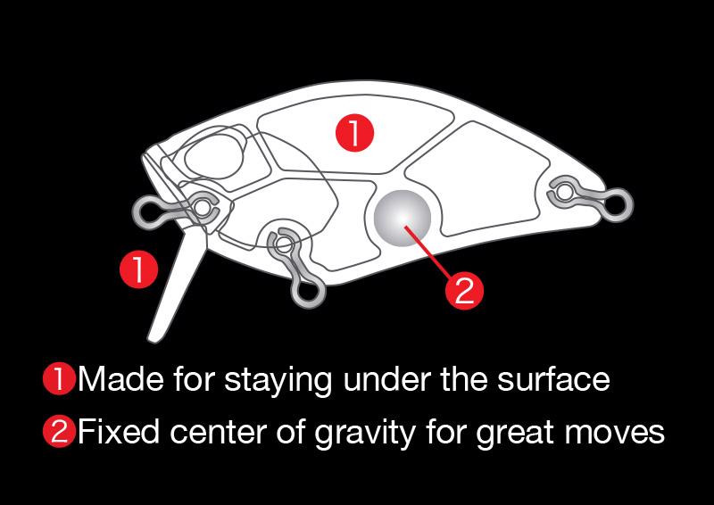 Het ontwerp van de body en de schoep met een vast zwaartepunt zorgt ervoor dat het kunstaas onder het oppervlak blijft. Ervaar hoe goed het zijn balans behoudt tijdens het binnenvissen en hoe mooi het wiebelt, zowel bij langzaam als snel tempo.