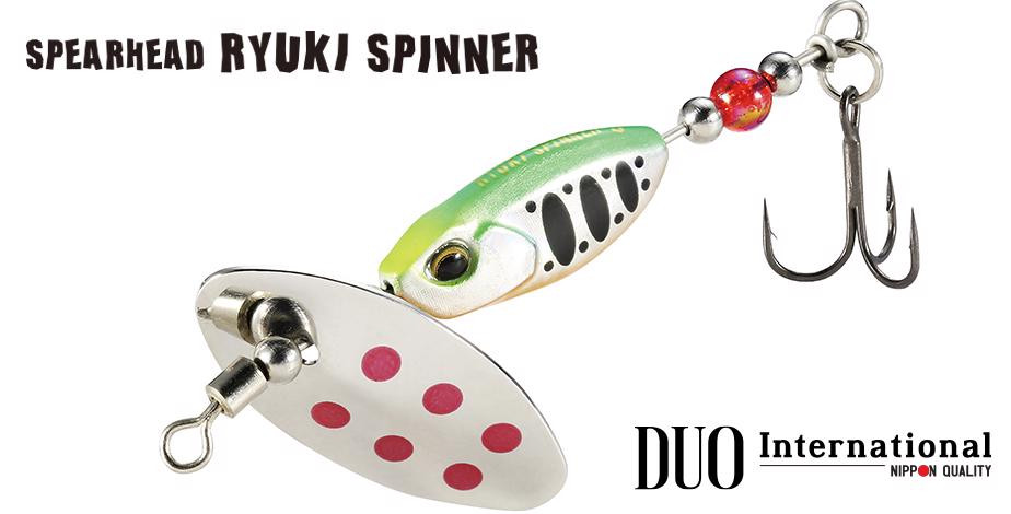 De DUO Spearhead Ryuki Spinners zijn verkrijgbaar in twee gewichten: 3.5g en 5g, met gouden of zilveren bladen. Voorzien van een hoogwaardige DUO Spearhead Ryuki drievoudige haak, die op alle Ryuki pluggen te vinden is. Premium categorie spinner, 100% Made in Japan.
