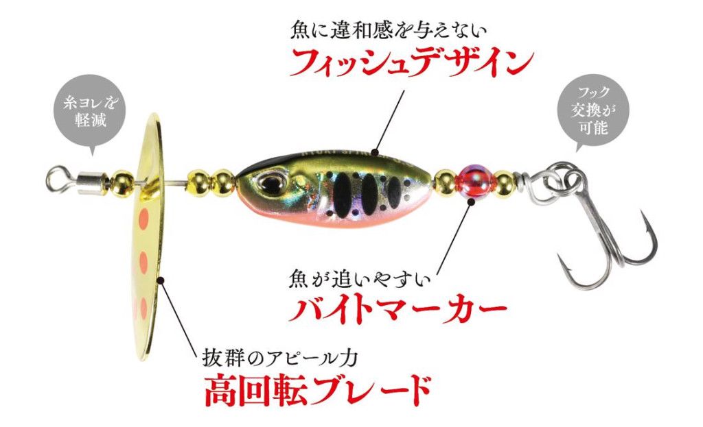 Uitgerust met een 'aas' lichaam dat lange worpen mogelijk maakt! Universele Japanse spinner, bruikbaar in zowel stilstaand water als sterke stroming.