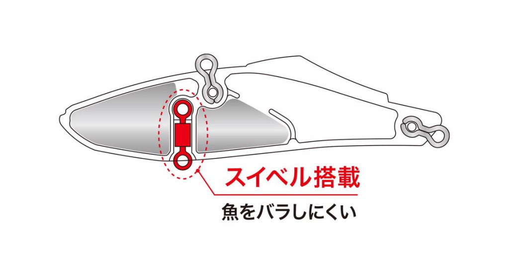 Een draaiend oog op de buik is aangebracht om de kans te verkleinen dat het kunstaas wordt gedetecteerd.