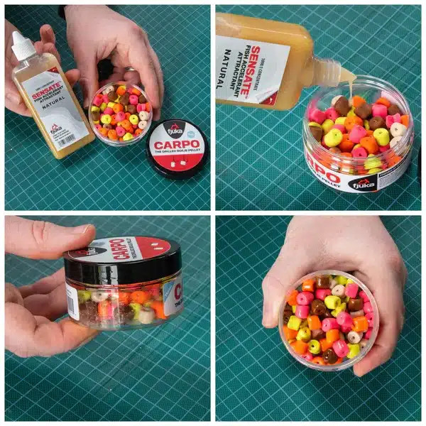 De aroma-attractoren van Fjuka Sensate Fish Accelerant Attractant Natural worden gedragen door zeer fijne voedseldeeltjes – met een diameter van slechts 0,4 micrometer, wat 0,4 duizendste van een millimeter betekent. Dus wanneer Sensate™ het water bereikt, verspreiden deze deeltjes zich onmiddellijk en vormen ze een geurwolk en een krachtig smaakspoor in het aas.