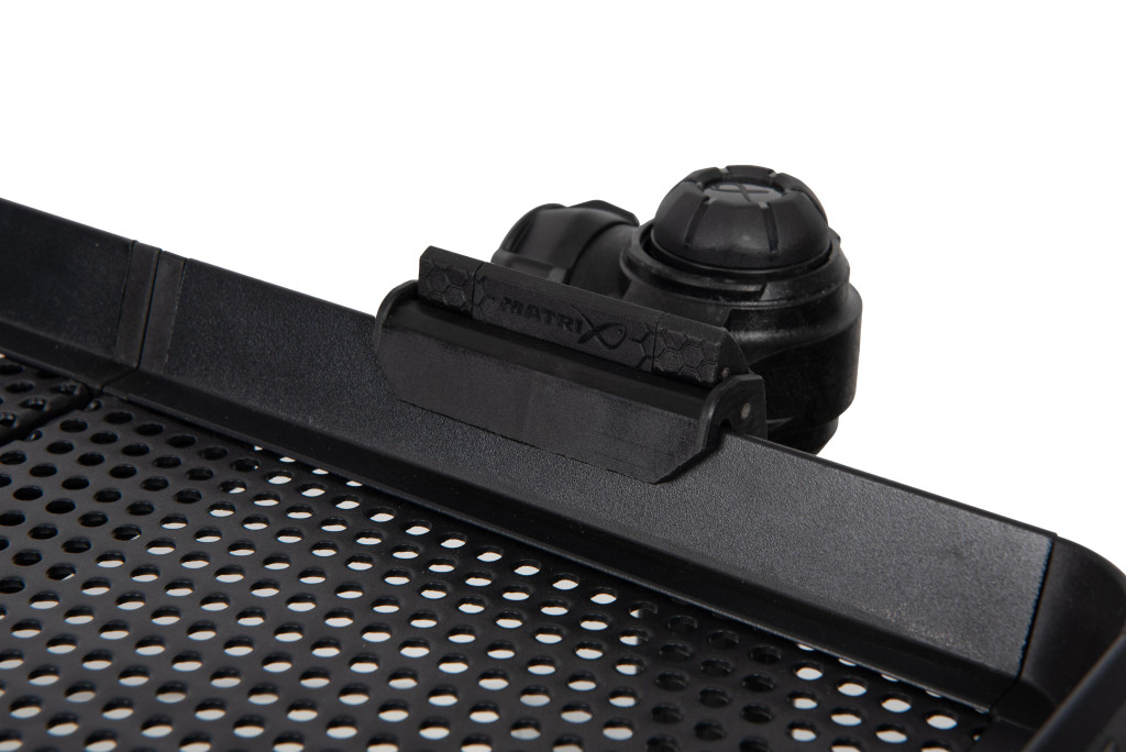 De Matrix Folding Side Tray Clamp kan ook worden gebruikt om een hengelsteun of aasscherm te bevestigen, zodat alle belangrijke gereedschappen binnen handbereik en veilig kunnen worden geplaatst tijdens het vissen. Het product wordt geleverd met inzetstukken van 25 mm en 30 mm, waardoor het gemakkelijk kan worden aangepast aan poten met verschillende diameters. Bovendien is het compatibel met ronde poten van 25 mm, 30 mm en 36 mm, waardoor het breed toepasbaar is binnen het Matrix systeem en ook met wedstrijdstoelen van andere fabrikanten.