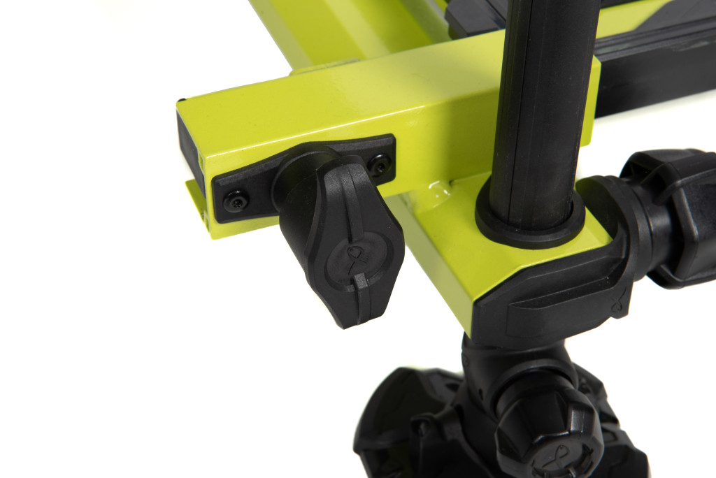 De kist is uitgerust met 25 mm geanodiseerde zwarte uitschuifbare poten, die nauwkeurige nivellering en veilige plaatsing mogelijk maken. De uitschuifbare voetensteun kan worden vastgezet met schroefpenvergrendelingen, zodat deze snel en stabiel kan worden afgesteld. Met de grote handwielen kunnen de elementen van de kist eenvoudig worden aangepast, wat de personalisatie naar de behoeften van de visser vergemakkelijkt.