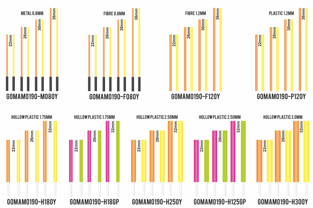 Garbolino Flotteurs Competition Series SP Holle Kunststof Antenne Set 1,75mm 6 stuks - Rood en Geel in 3 maten