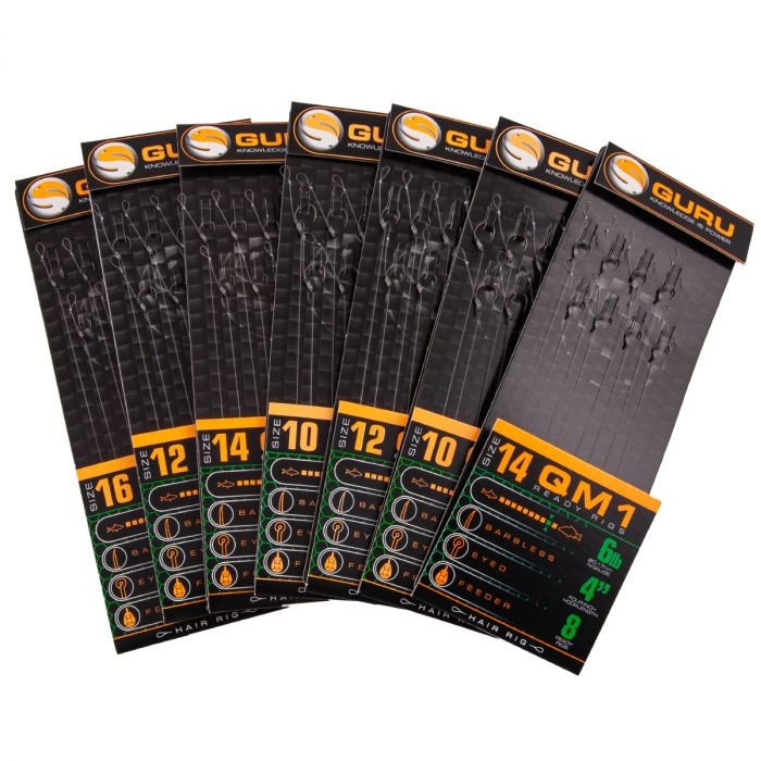 GURU QM1 STANDARD HAIR READY RIGS 4 Size voorgeknoopte QM1 haak (12 - 0.19MM)