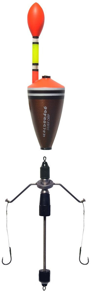 Het gebruik van de dobber is heel eenvoudig: bind de hoofdlijn vast aan de wartel aan de bovenkant, en draai vervolgens de borgschroef aan de onderkant van de stalen stang los. Dit maakt het mogelijk om de tablet op de stalen stang te plaatsen. Als dit is gebeurd, moet de schroef stevig terug op zijn plaats worden gedraaid. - Het is aan te raden om technopuffs op de haken te plaatsen om ze lichter te maken. Deze moeten precies groot genoeg zijn om de haken „gewichtloos” te maken, maar ze mogen ze absoluut niet van de voerkorf optillen. - De dobber is uitgerust met 2 haken, maar dit is niet op alle wateren toegestaan; informeer u alstublieft over de lokale regelgeving voordat u begint met vissen! - Het gebruik van de dobber vereist extreme voorzichtigheid vanwege de 2 vlijmscherpe haken, om te voorkomen dat ze in uw hand terechtkomen. Kinderen mogen deze alleen gebruiken onder toezicht van een volwassene!