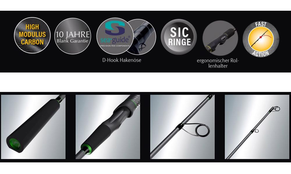 Het werpgewichtbereik van 130-225 gram betekent dat je er probleemloos grote shads, wobblers of jerkbaits mee kunt gebruiken, die zelfs de grootste snoeken tot een aanbeet verleiden. De ruggengraat van de hengel is ontworpen om brute aanbeten en de wildste drills te weerstaan, terwijl de extreem gevoelige top zelfs de meest subtiele trillingen doorgeeft.