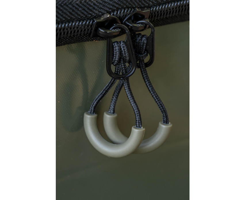 Onder de trays is voldoende ruimte voor potjes met haakaas, lokstoffen en andere accessoires, zodat alle belangrijke gereedschappen binnen handbereik zijn. Het materiaal van de tas is 100% EVA (ethyleenvinylacetaat), dat waterdicht, lichtgewicht en extreem resistent is tegen mechanische invloeden. De robuuste ritssluiting en de comfortabele, afneembare schouderriem zorgen voor gemakkelijk transport en betrouwbaar gebruik.