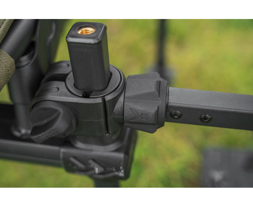 Het Any Chair Systeem verandert stoelen in een volledig modulair uitrustingssysteem. Open eenvoudig de scharnier om aan de stoel te bevestigen en gebruik de meegeleverde inzetstukken voor de beste pasvorm. Met de zijdelingse bevestigingsschroeven kunnen we de beste hoek aanpassen aan de gegeven situatie. Geleverd met 23 mm ronde, 25 mm ronde en 23 mm vierkante inzetstukken. Past direct op de Korum X25 en S23 Accessoire stoelen.