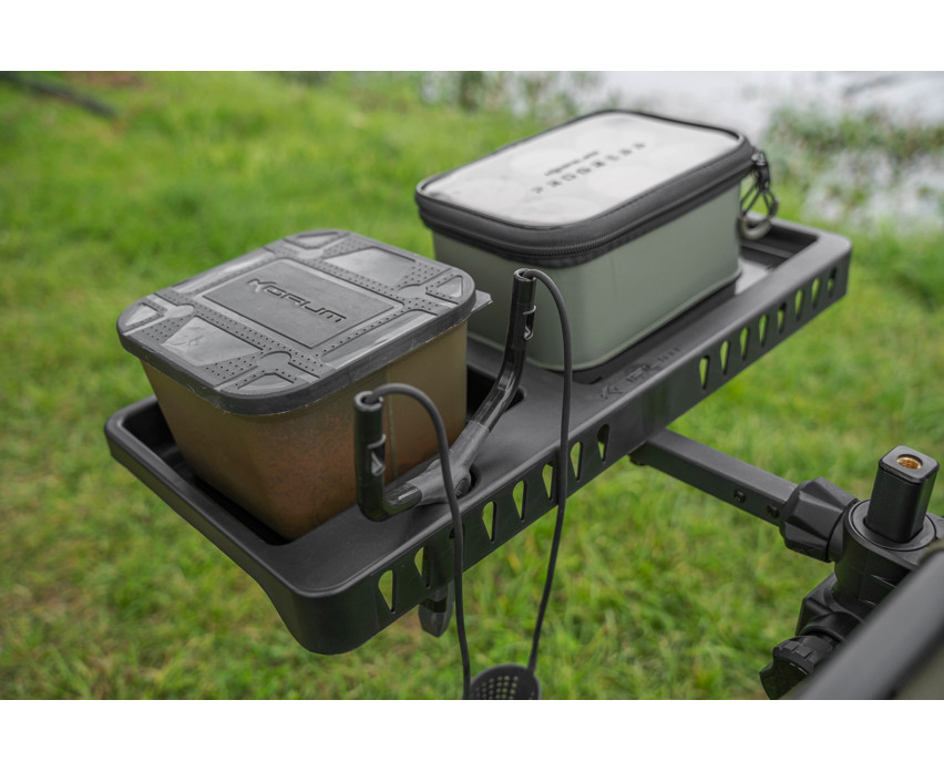 Dit Blox en Bait Tub compatibele zijblad is de perfecte metgezel voor een vissessie aan het water. Je kunt de belangrijkste spullen bewaren op een stabiel, verstelbaar blad dat altijd binnen handbereik is. Bevat een houder voor een katapult, een uitsparing voor reserveonderdelen en een bevestigingspunt voor de Gripper Rest hengelsteun.