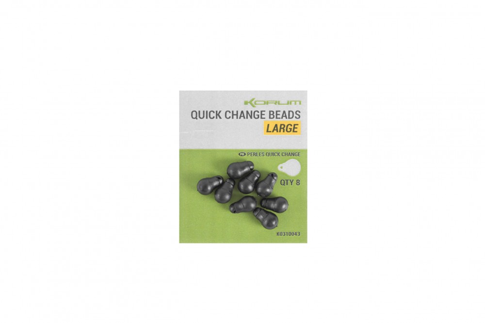 De KORUM QUICK CHANGE BEADS is een zwart snelkoppelingssysteem om snelle onderlijnverwisselingen te vergemakkelijken. Het is een essentieel onderdeel van Method-montages. Het kan worden toegepast op elke feeder- of bomb-methode.