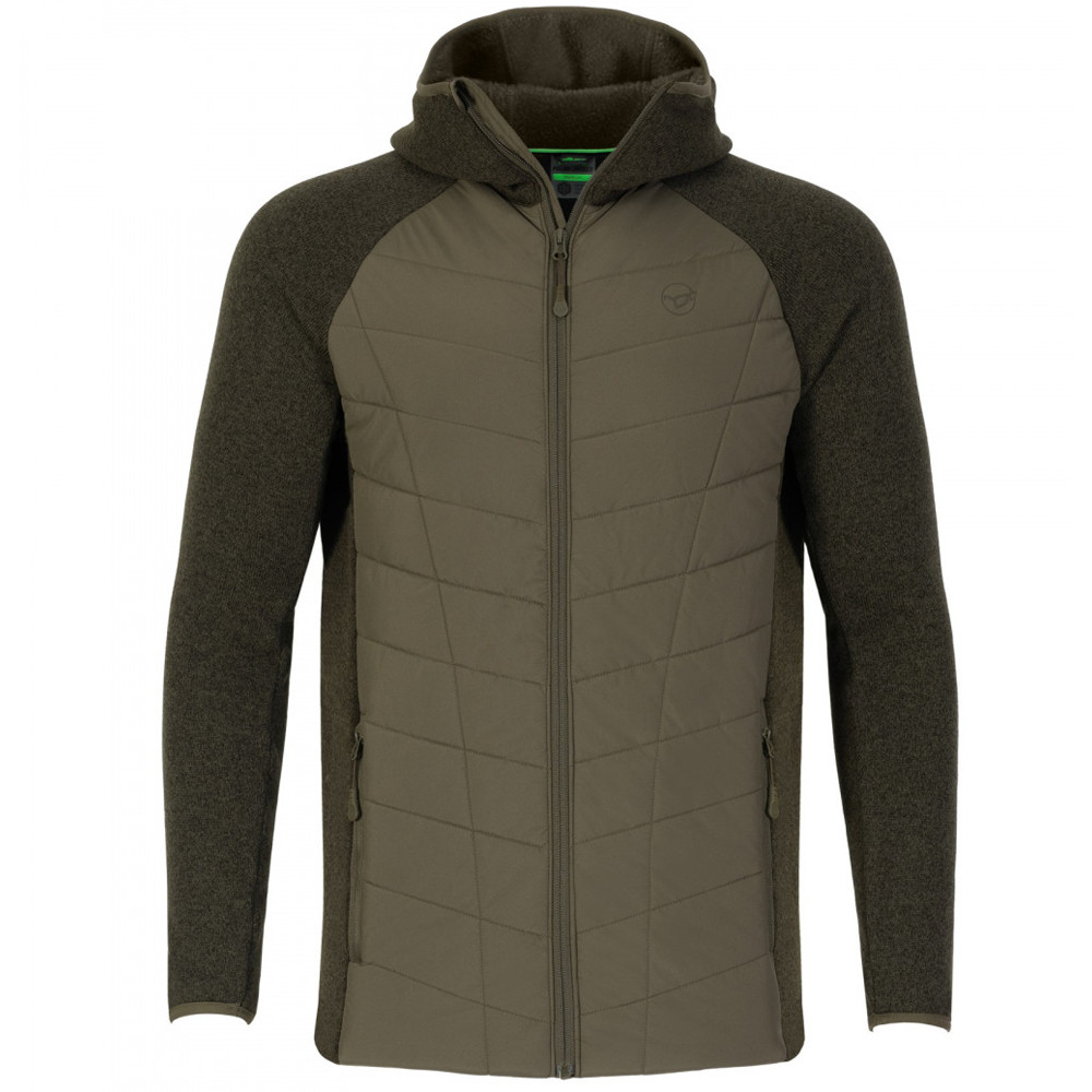 De Korda Hybride Zwarte Winterjas is de perfecte combinatie van de twee populairste jassen van het merk, de Polar Fleece en de Puffer Jacket. De fleece jas combineert de lichte, flexibele eigenschappen van de fleece jas met het uitstekende warmtebehoud van de puffer jas, waardoor een veelzijdige en comfortabele jas wordt geboden die ideaal is voor vissen bij koud weer of zelfs voor dagelijks gebruik. De jas is gemaakt van twee verschillende materialen om maximaal comfort en warmte-isolatie te garanderen. De armen, zijpanden en capuchon zijn gemaakt van zwaar gebreide fleece stof, die niet alleen uitstekende warmte biedt, maar ook voldoende flexibel is, zodat al je bewegingen vrij blijven. Het puffer-stijl middengedeelte maakt gebruik van holle vezeltechnologie, wat betekent dat het optimale warmte biedt van het lichtst mogelijke materiaal, terwijl het ademend blijft, voor urenlang comfortabel dragen.De Hybrid Jacket is ontworpen om de bewegingen tijdens het vissen niet te belemmeren, waardoor het een perfecte keuze is voor werpen en voeren, zelfs onder de koudste omstandigheden. Het verlengde rugpand zorgt ervoor dat je ook zittend beschermd bent tegen kou en wind, terwijl het winddichte middengedeelte extra bescherming biedt tegen de elementen. De fleece capuchon en de hoge ritskraag zorgen ervoor dat koude lucht niet in de jas kan komen, waardoor je zelfs onder extreme omstandigheden warm blijft. Twee met rits afsluitbare, met fleece gevoerde zakken zorgen ervoor dat je handen altijd warm blijven, maar je kunt er ook gemakkelijk kleinere spullen in opbergen, zodat ze altijd binnen handbereik zijn. De kwaliteitsritsen garanderen een lange levensduur, en het duurzame materiaalgebruik zorgt ervoor dat de jas jarenlang je trouwe metgezel blijft.De jas is een modieuze, maar functionele outfit, verkrijgbaar in maten van S tot XXXL, zodat iedereen de perfecte versie voor zichzelf kan vinden. Als je op zoek bent naar een warme, comfortabele en veelzijdige jas die niet alleen bescherming biedt tegen de kou, maar ook bewegingsvrijheid tijdens het vissen, dan is de Korda Hybrid Jacket de perfecte keuze voor jou.In onze brede selectie van de webshop vind je niet alleen kleding van hoge kwaliteit, maar ook visuitrusting, Accessoires. Want de viservaring schuilt niet alleen in de gevangen vissen, maar ook in het comfort van de juiste uitrusting. Kies uit speciale kleding die ideaal is voor vissen, en onderkleding die beschermt tegen veranderende weersomstandigheden. Bovendien zijn er premium thermo laarzen voor koudere omstandigheden. Of het nu gaat om een comfortabel verblijf aan het water, wandelen of buitenactiviteiten, bij ons vind je alles wat nodig is voor een succesvol en comfortabel avontuur! Merk in onze categorie ontdek je de producten van de meest gerenommeerde fabrikanten van visuitrusting. Mis ook onze nieuwigheden en accessoires niet, want bij ons vind je alles wat je nodig hebt om van het leven aan de oever te genieten en te kamperen, zoals tenten, slaapzakken en andere accessoires voor buitenavonturen.Inhoud van het pakket:Korda Hybride Olijfgroene Winterjas S