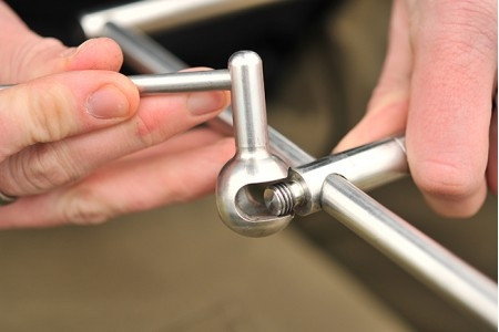 De Korda Singlez Ball Stabilizer past perfect op de onderkant van de Singlez buzzbars en maakt de opstelling rotatiebestendig wanneer ze in de grond worden gedrukt. Twee Stabilizers zijn nodig voor het complete Singlez systeem.