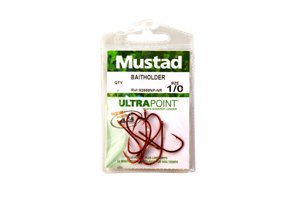 Mustad Red Baitholder 3/0 Oog, Barbed Haak 8st