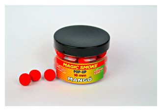 Motaba Carp Magic Smoke Pop-up - 16mm - De Motaba Magic Smoke Pop-up is een drijvend en oplosbaar aas, waarvan het drijfvermogen zo is afgesteld dat het een haak van maat 6 over de volledige onderlijnlengte kan optillen. De hele serie wordt gekenmerkt door een krachtige, maar aangename aroma, vergezeld van zeer opvallende kleuren.