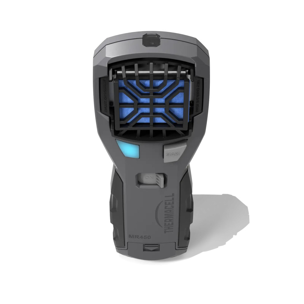 De MR450X is de nieuwste draagbare muggenverjager van Thermacell, die beschikt over nieuwe, verbeterde functies. De nieuwe functies omvatten: Stille start, Opnieuw ontworpen rooster en schakelaar, Verbeterde ergonomie en een aanpassing van de bevestiging van accessoires.